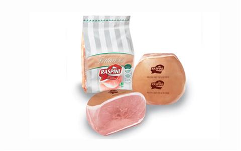 SCELTO FETTAROSA INTERO KG.8 RASPINI Classico prosciutto da gastronomia, con qualità superiore. Solo per bar o pub con alti consumi. Coscia estera selezionata e aromatizzazione leggera per far assaporare tutto il gusto del prosciutto.