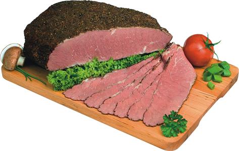 Pastrami Brisket NY STYLE Kg. 1,8 - Taglio di manzo brisket marinato, speziato, cotto al forno al vapore e infine affumicato. Il risultato è una carne tenerissima e succulenta, dal sapore inconfondibile e con pochissimi grassi. Il pastrami è molto versatile, tagliato sottile offre una resa elevata e si presta a molteplici preparazioni; sandwiches, insalate, antipasti o semplicemente affettato.