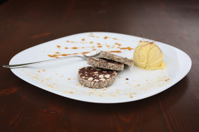 - il Salame al Cioccolato alle Nocciole: l’impasto base è quello del salame al cioccolato classico, nel quale vengono aggiunte nocciole intere del Piemonte al posto degli amaretti, che dona al dessert un gusto deciso.