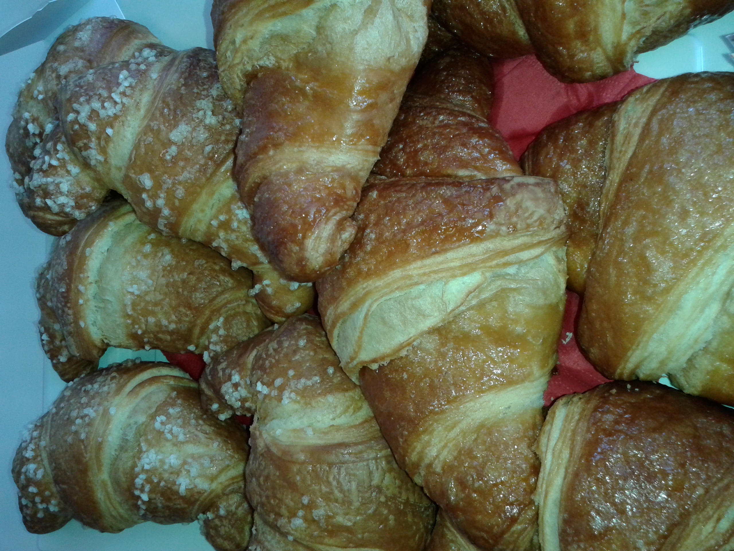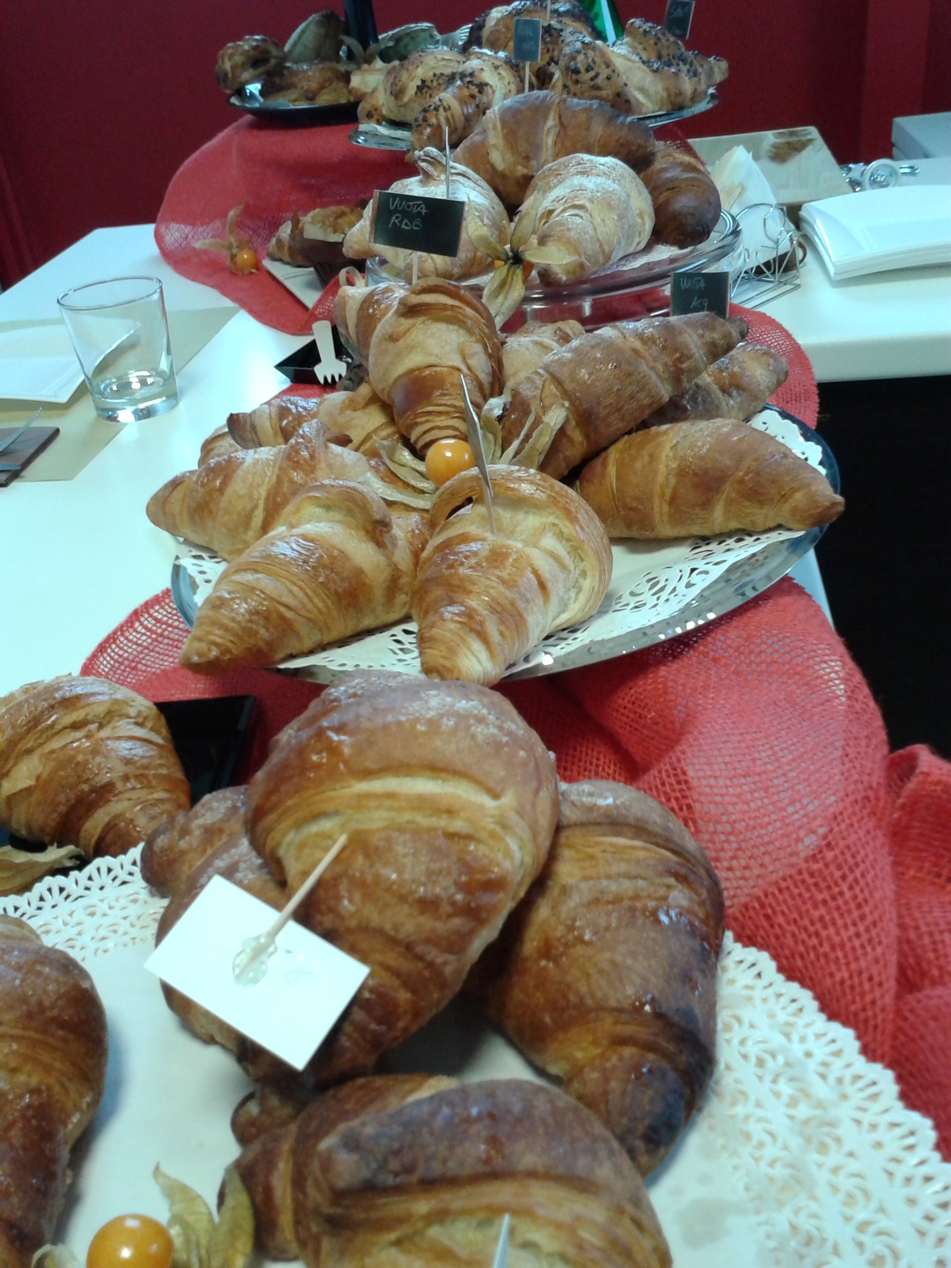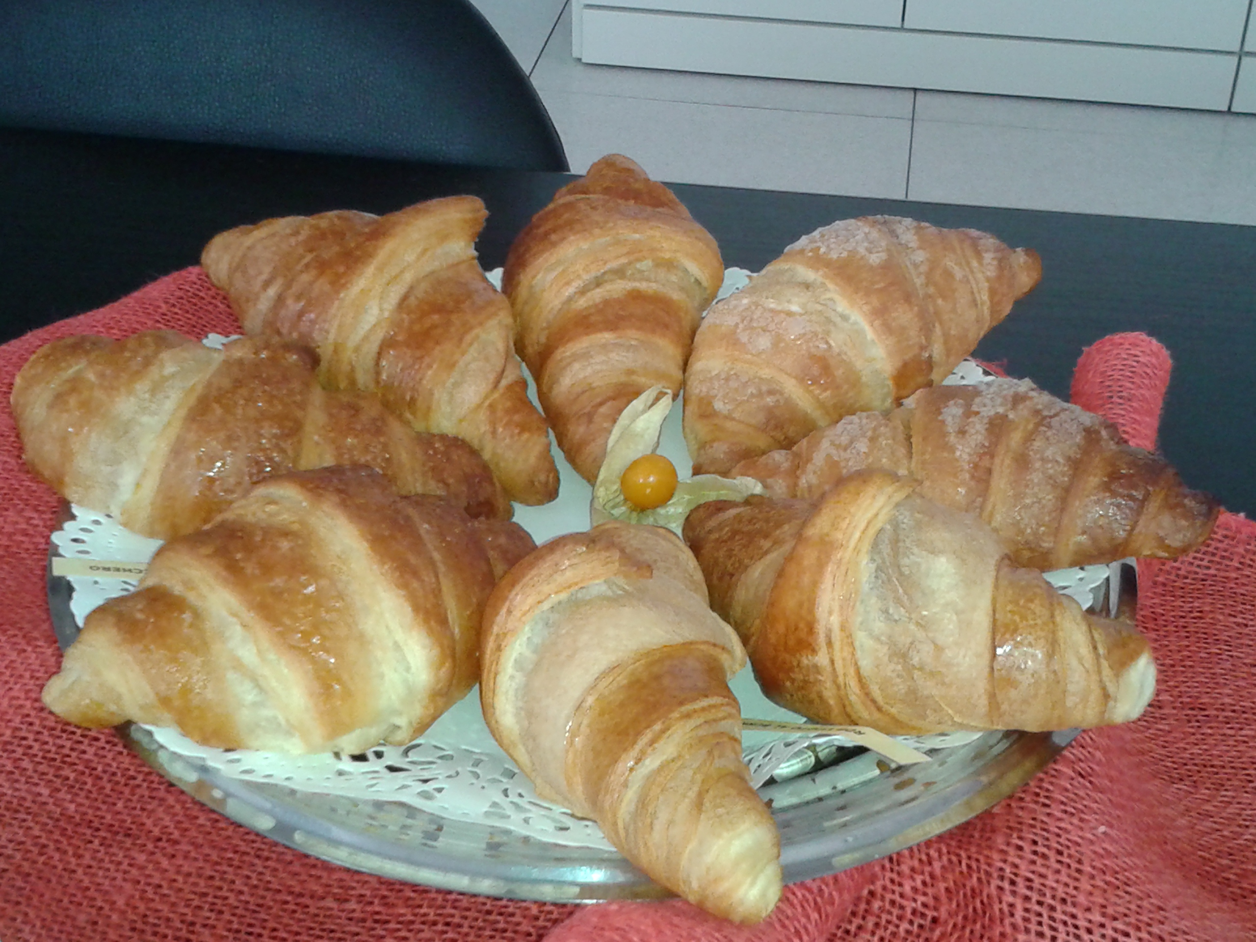 Il tavolo della sala riunioni era colmo di vassoi, alzatine, piatti di portata dalle forme più strane, e tutti erano decorati con tovagliette di pizzo bianche sulle quali troneggiava tutto l’assortimento dei croissant Acquaviva: uno spettacolo! Ragazzi non vi dico i profumi… Mancava ancora un’ora all’arrivo degli agenti ed io ne avrei morsa volentieri una! In questa azienda non si può stare a dieta, mangiare fa parte del nostro lavoro e devo dirvi che è la parte più piacevole, se smetti di salire sulla bilancia!