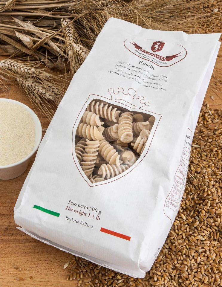 Dieci diversi formati di pasta, con il grano macinato secondo una ricetta semi-integrale, trafilati a bronzo e tutti asciugati a bassa temperatura, da 50° a scendere per un tempo variabile, secondo i diversi tipi di formato, da 14 a 20 ore. Tutto questo impegno per una emozione unica all’assaggio.