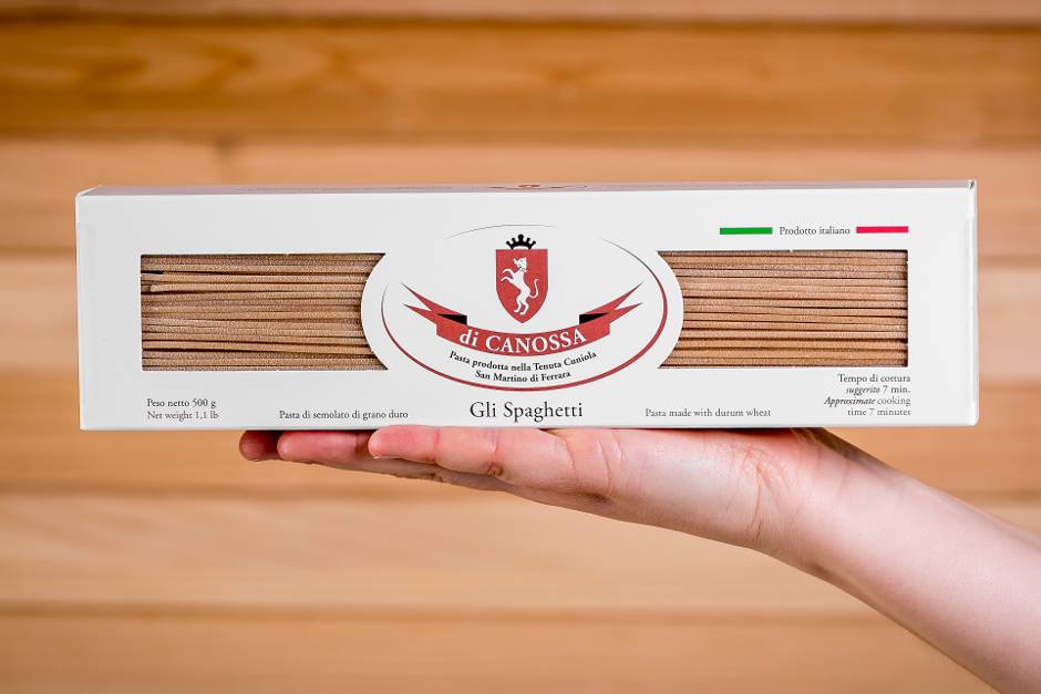 La pasta di Canossa nasce per iniziativa di Ottavio di Canossa, classe 1980, discendente di una antica famiglia tra le cui proprietà c’è la Tenuta Cuniola, cinquecento ettari nella campagne ferraresi.