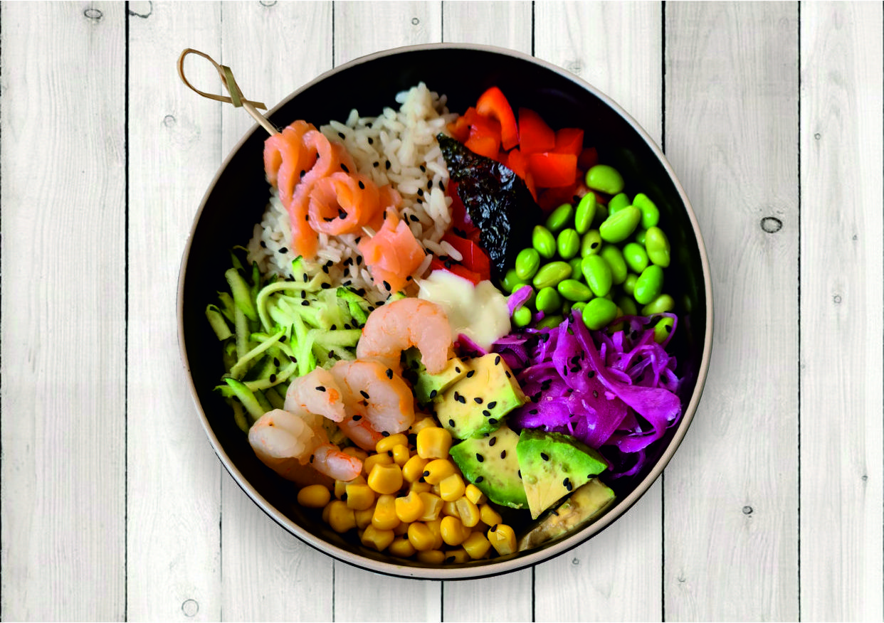 Ai locali che serviamo, gli agenti Surgel Company offrono tutti gli ingredienti necessari per una soluzione pratica e veloce, a partire dal riso bianco precotto, pronto da scaldare al microonde.Quindi le proteine: salmone affumicato, gamberetti, tonno, tagliata e cuoricini di pollo.E poi le verdure e le salse. Infine l'apporto di croccantezza per il topping: arachidi e cipolla croccante.Assemblare il tutto è un attimo (meno di 3 minuti). Ed è possibile proporre differenti ricette, a base di pesce, carne o in versione vegetariana.