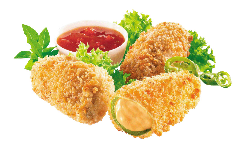 Ti offriamo dai classici fritti all’Italiana, come olive all’ascolana, mozzarelline panate e arancini di riso, ai prodotti a base di pollo aromatizzati, come alette Piccanti, o le crocchette, fino ad arrivare ai prodotti vegetariani e alle specialità della cucina TEX MEX, senza dimenticare i tranci di focaccia e di pizza già cotti, che si possono “cubettare” a piacere.