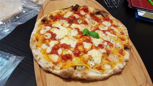 Pasta lievitata 24 ore, pomodoro italiano, vera mozzarella messa a crudo.