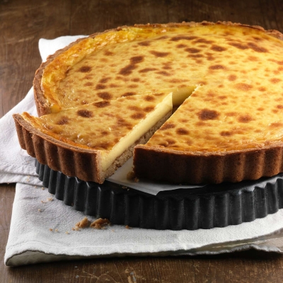CROSTATA ALLA CREMA CATALANA 14 FETTE: un guscio di pasta frolla racchiude la golosa crema catalana.