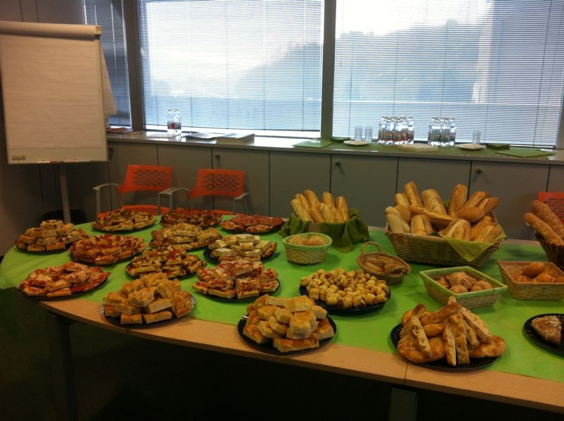 La visita allo stabilimento si conclude, Emanuela Cha ci riaccompagna in sala riunioni dove lo chef Marco Virdis ci ha preparato un meraviglioso buffet con tutti gli articoli da loro prodotti. Uno spettacolo! Focacce, pane e pizze farcite in mille modi, tagliate a strisce a cubetti a triangoli, al naturale o con salumi, insomma una festa per gli occhi e per il nostro palato. Iniziano le degustazioni, lo chef spiega le caratteristiche, le cotture, gli abbinamenti, le particolarità e noi con grande interesse, assaggiamo, facciamo domande ed apprezziamo!