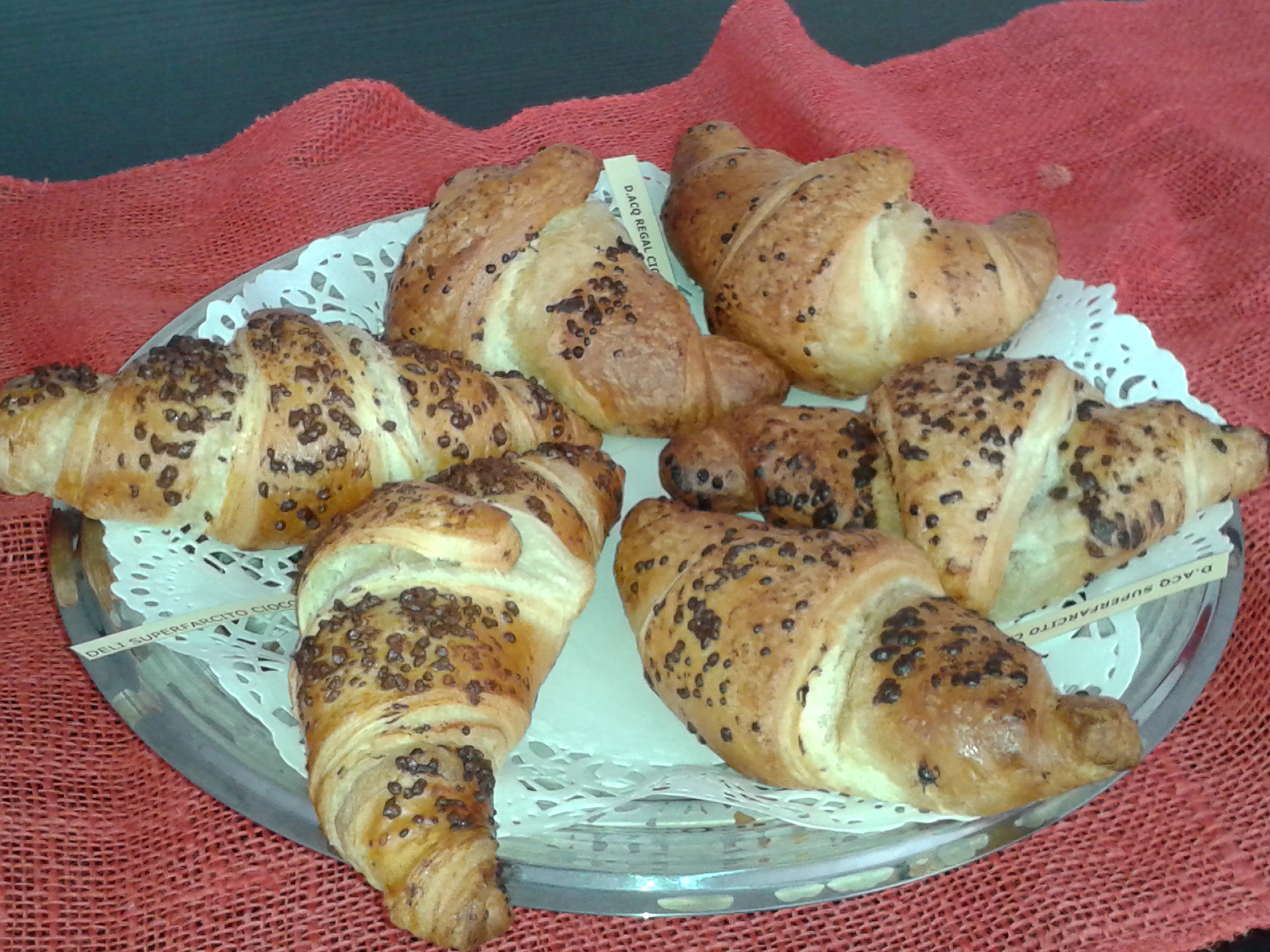 Il tavolo della sala riunioni era colmo di vassoi, alzatine, piatti di portata dalle forme più strane, e tutti erano decorati con tovagliette di pizzo bianche sulle quali troneggiava tutto l’assortimento dei croissant Acquaviva: uno spettacolo! Ragazzi non vi dico i profumi… Mancava ancora un’ora all’arrivo degli agenti ed io ne avrei morsa volentieri una! In questa azienda non si può stare a dieta, mangiare fa parte del nostro lavoro e devo dirvi che è la parte più piacevole, se smetti di salire sulla bilancia!